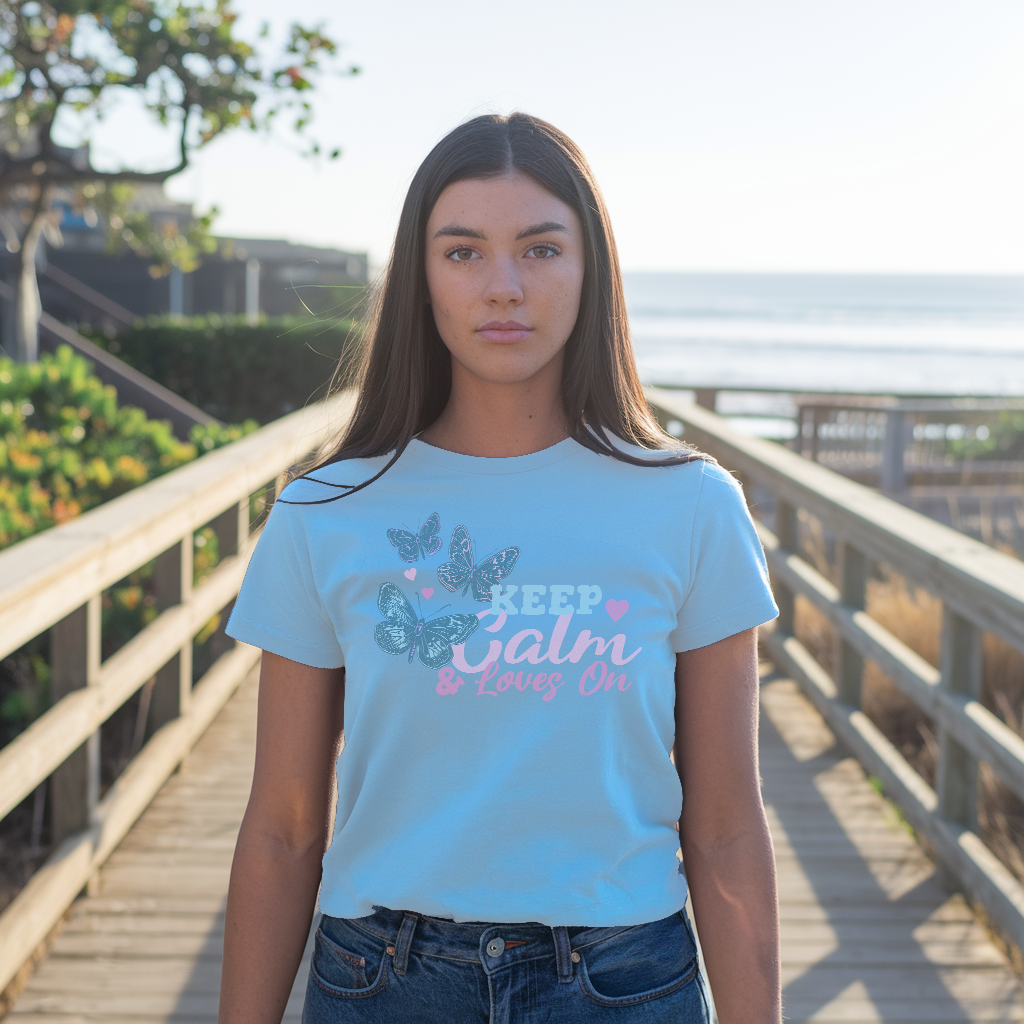 Introducing the "Keep Calm & Loves On" Women's Tee, the perfect blend of style and self-care. This soft and comfortable tee is a must-have for any woman who values herself and wants to spread positivity to the world. Elevate your wardrobe with this empowering and uplifting tee.